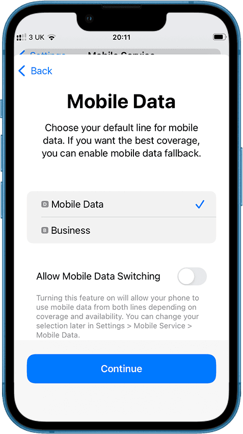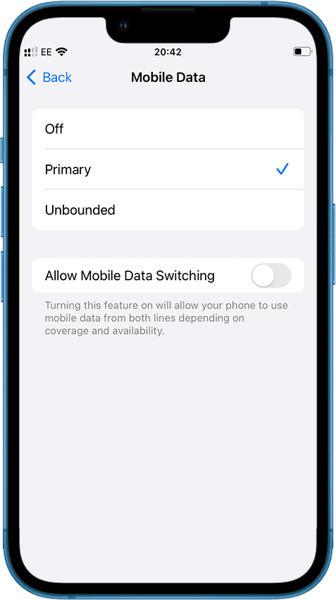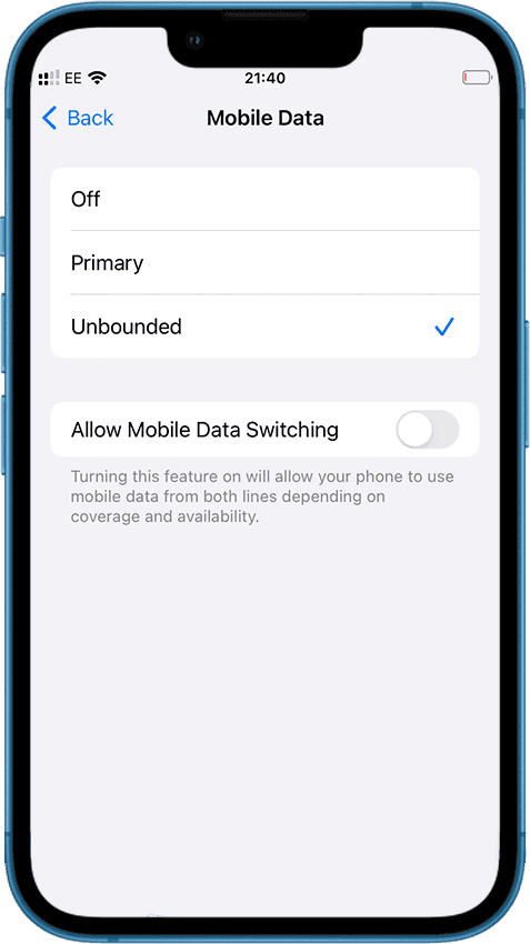 Select Unbounded to use its data. Select your other SIM card when you've finished taking payments.