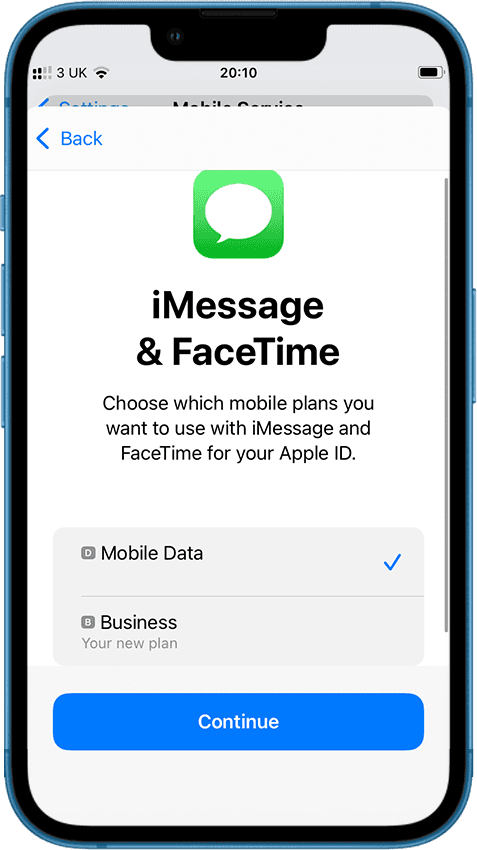 You’ll then be asked the same for iMessage and FaceTime—select your existing SIM (the first one on the list).