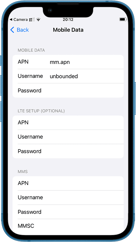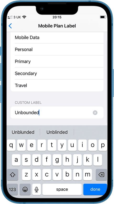 Add a Custom Label called ‘Unbounded’, then tap ‘Back’. Your Unbounded SIM is now installed and ready to go!
